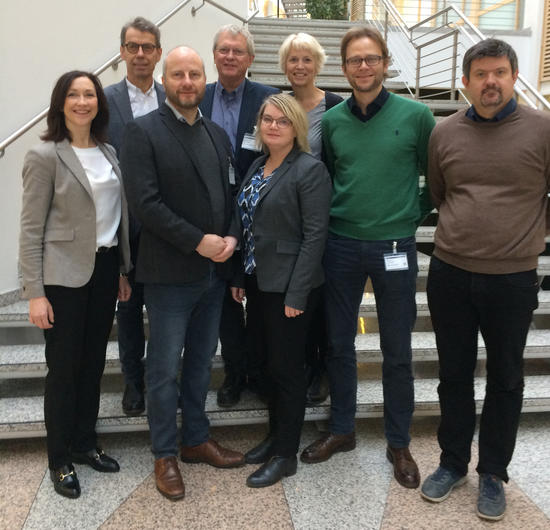 Nederst fra venstre: Elisabet Maråk Støle – Møreforskning, Øyvind Skogvold – Trøndelag FoU, Merete Lunde – Vestlandsforskning, Roger Lian – Østlandsforskning, Roger Normann – Agderforskning. Øverst fra venstre: Einar Leknes – IRIS, Karl Gunnar Sanda – Telemarksforskning, Iselin Marstrander - Nordlandsforskning. (Ikke til stede: Eirik Mikkelsen – NORUT, Trond Edvardsen – Østfoldforskning).