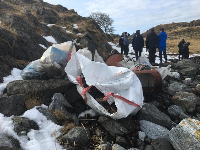 Elever ved Bodin videregående skole deltok på strandrydding, som en del av undervisningsopplegget. Foto: Anne Dupont Andersen
